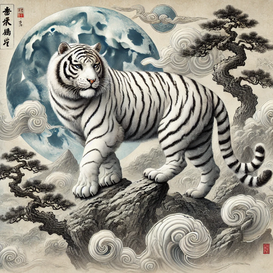 신화속에 등장하는 사방신인 청룡(동), 백호(서), 주작(남), 현무(북)에서 서쪽을 다스리는 백호를 말합니다.