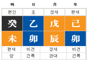 예를 들어 위와 같은 기묘년 무진월 을묘일 계미시에 태어난 쌍둥이 사주가 있다면,