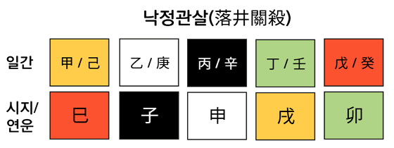 우물에 빠져 고립된 신살, 낙정관살(落井關殺)